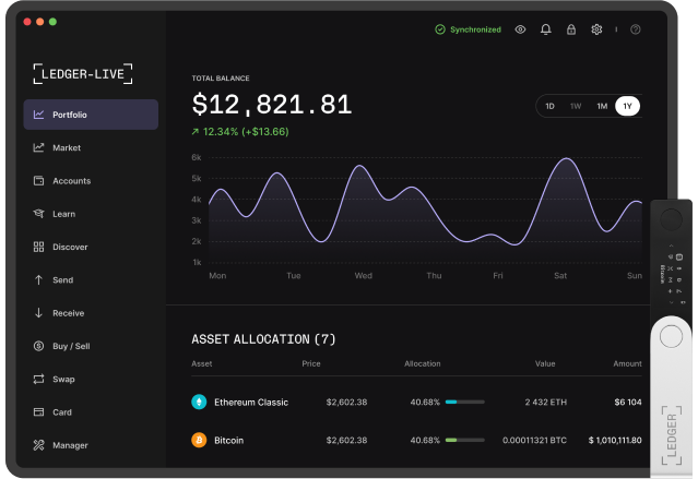 L'application qui vous permet de gérer les fonds contenus dans votre Ledger s'appelle Ledger Live. Cette dernière s'installe sur votre ordinateur et vous permet de gérer les cryptos et NFT stockés sur l'appareil. Elle est également disponible sur iOs et Android, pour vous permettre de gérer vos investissements en cryptomonnaie directement depuis votre smartphone. Ledger Live vous permet d'acheter, d'échanger et de vendre des cryptomonnaies ainsi que des NFTs.