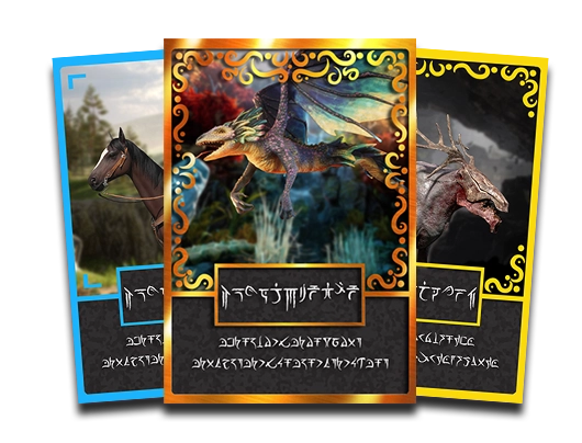 Les cartes NFT de ce jeu seront réparties en trois catégories. Il y aura d'un côté les montures et familiers, de l'autre les armes, et enfin les terres. Vous pouvez retrouver un aperçu de ces cartes ci-dessous :